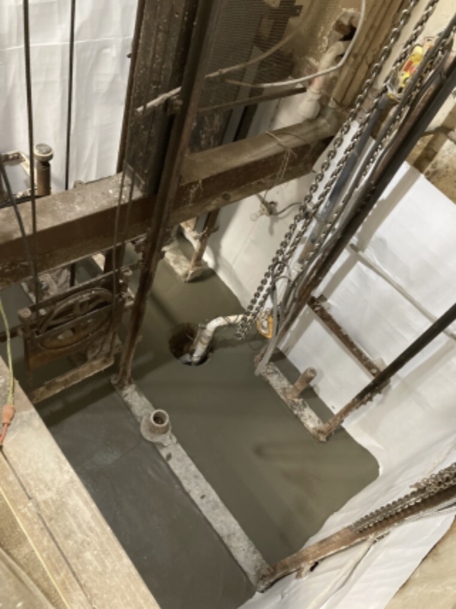 Los fosos de ascensor con filtraciones pueden ocasionar daños costosos al equipo eléctrico y mecánico, lo cual provoca interrupciones en el servicio y afecta el funcionamiento del edificio. Un foso de ascensor específico ubicado en Homewood, Illinois, presentaba daños significativos y múltiples filtraciones, lo que comprometía la integridad operativa del ascensor. El foso de ascensor es el área más baja de un edificio, por lo que está expuesto a la mayor presión hidrostática del agua subterránea, lo cual agrava los problemas de filtración y reparación.