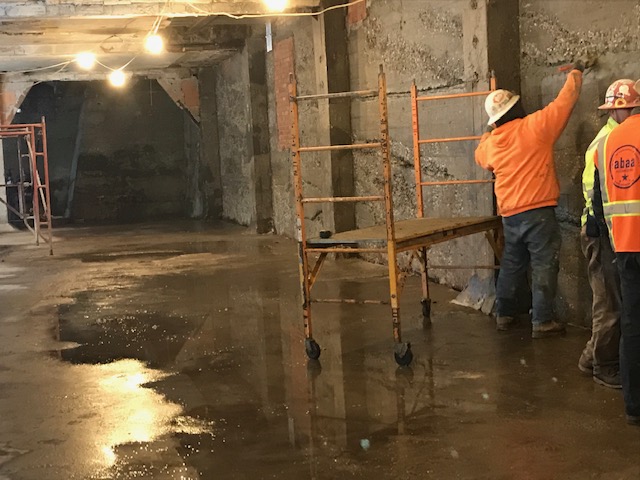 It was desired to upgrade the below grade areas to make it usable for various meeting and office rooms as well as a large fitness facility. The most obvious defects in terms of honeycomb, cracks and joints were chipped open and repaired using Xypex standard methods and materials. The entire surface including concrete, brick and CMU sections were then coated with Xypex Concentrate followed by a ¾” – 1” layer of Xypex Megamix II.