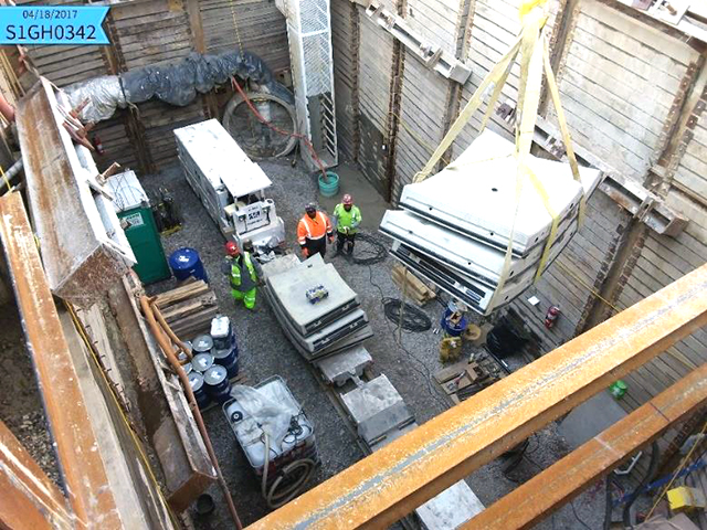 Widely varied geological conditions (fig 4) were encountered by the 370-foot (113 m) TBM during the excavation at depths of 40to 140 feet, including glacial and alluvialmaterial, tills, boulders, sand, fill and shale. Aprecast concrete tunnel, consisting of more than 5,600 rings comprised of 33,000 segments, was installed directly behind the TBM as it drove forward (fig 5).