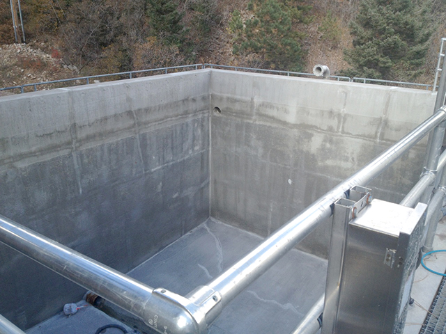 The Xypex Concentrate was applied to the interior walls of the WWTP to ensure that the water at each phase of the cleansing wouldn’t leach into the other cells and contaminate the process. Megamix I was then applied over the Xypex Concentrate to provide a smooth finish as exposed aggregate was a concern. Megamix II is a thick, high-strength repair mortar with a tenacious tensile bond was used at the base of one of the interior cells and all construction joints at the base of the exterior and interior cell walls were repaired with Xypex Patch’n Plug.