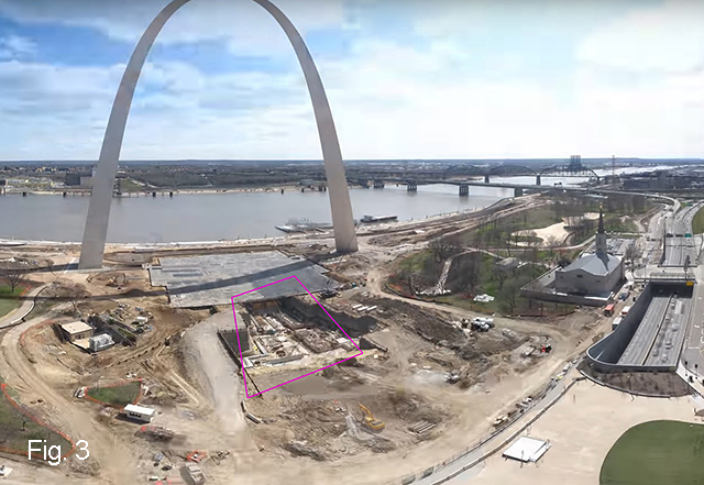 In 2009, a plan was developed to dramatically expand and redesign the landscaping and facilities around the base of the Gateway Arch (fig. 1) to integrate it more fully with downtown St. Louis and provide the visitor experience befitting one of the world’s greatest monuments. The largest public-private partnership (P3) investment ever in a national park—known as the Gateway Arch ParkFoundation—was formed to provide $380 million in public and private funding for the renovation and expansion effort.