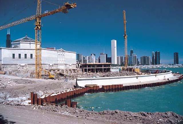 Xypex products were used at the prestigious Shedd Aquarium in Chicago, a project that has become well known because of the complexity of its construction and because it includes the world’s largest enclosed artificial ocean. Xypex products were used specifically in the cold-water marine mammal pavilion which consists of five large saltwater pools, including a 7.5 million litre (2 million gallons) main exhibition tank, surrounded by sloping rockwork and nature trails. The large exhibition pool, which is the home of the Beluga whales, received a two-coat application of Xypex Concentrate and Modified to all exterior walls and mud slabs. Two coats were also applied to walls and slabs of the other saltwater pools. The total area treated was approximately 11,150 m2 (120,000 sq. ft.). It is interesting to note that before constructing the pools, steel sheet pilings were placed into Lake Michigan completely encircling the site. This area was then reclaimed by pumping out lake water and backfilling.