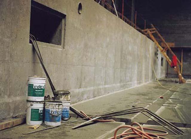 Xypex products were used to waterproof the main competition pool, the diving tank and the warm-up pool at this complex built originally for the 1990 Goodwill Games in Seattle. The Xypex treatment consisted of two slurry coats on the vertical surfaces and a dryshake application on the slabs. A decorative coating was also specified to be applied over the Xypex treatment. However, the manufacturer of the decorative coating called for their product to be applied only over bare concrete. This problem was resolved by allowing the Xypex product to remain on the walls for five weeks to ensure complete chemical transfer from the coating into the concrete, and then sandblasting the coating off to expose the concrete and thus permit istallation of the decorative coating as per the manufacturer’s specifications. It should also be noted that during these operations, 3″ and 5″ (76 mm and 127 mm) rainfalls occurred causing massive flooding in the area. Although the pool walls were subjected to increased ground water pressure during these times, there was no water seepage into the pools.