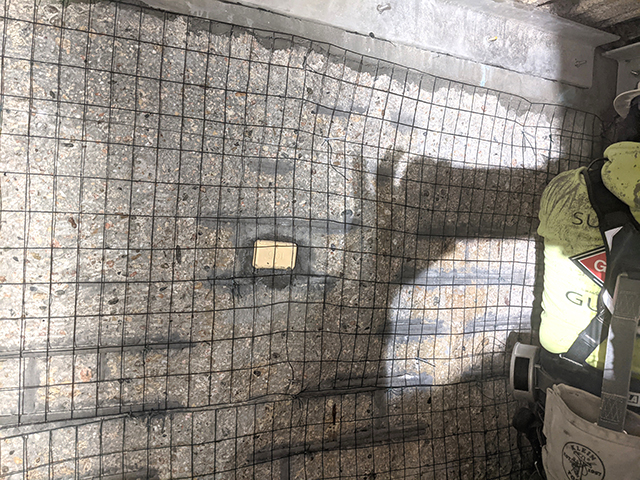 Hydrodemolition was used to remove all unsound concrete from the wet well. Exposed rebar was cleaned and coated. Sacrificial anodes were attached in several areas (fig 8). Megamix II with Bio-San was then spray applied by applicators Advanced Shotcrete, based in Watkins, Colorado, and hand finished (fig 9).