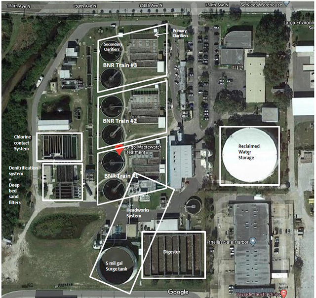 The 50-year-old plant, located on the eastern edge of the city, discharges treated effluent into Feather Sound on Old Tampa Bay. Since 2012, the plant has been under orders from the Florida Department of Environmental Protection (FDEP) to reduce the levels of nitrogen and phosphorous in its discharge.