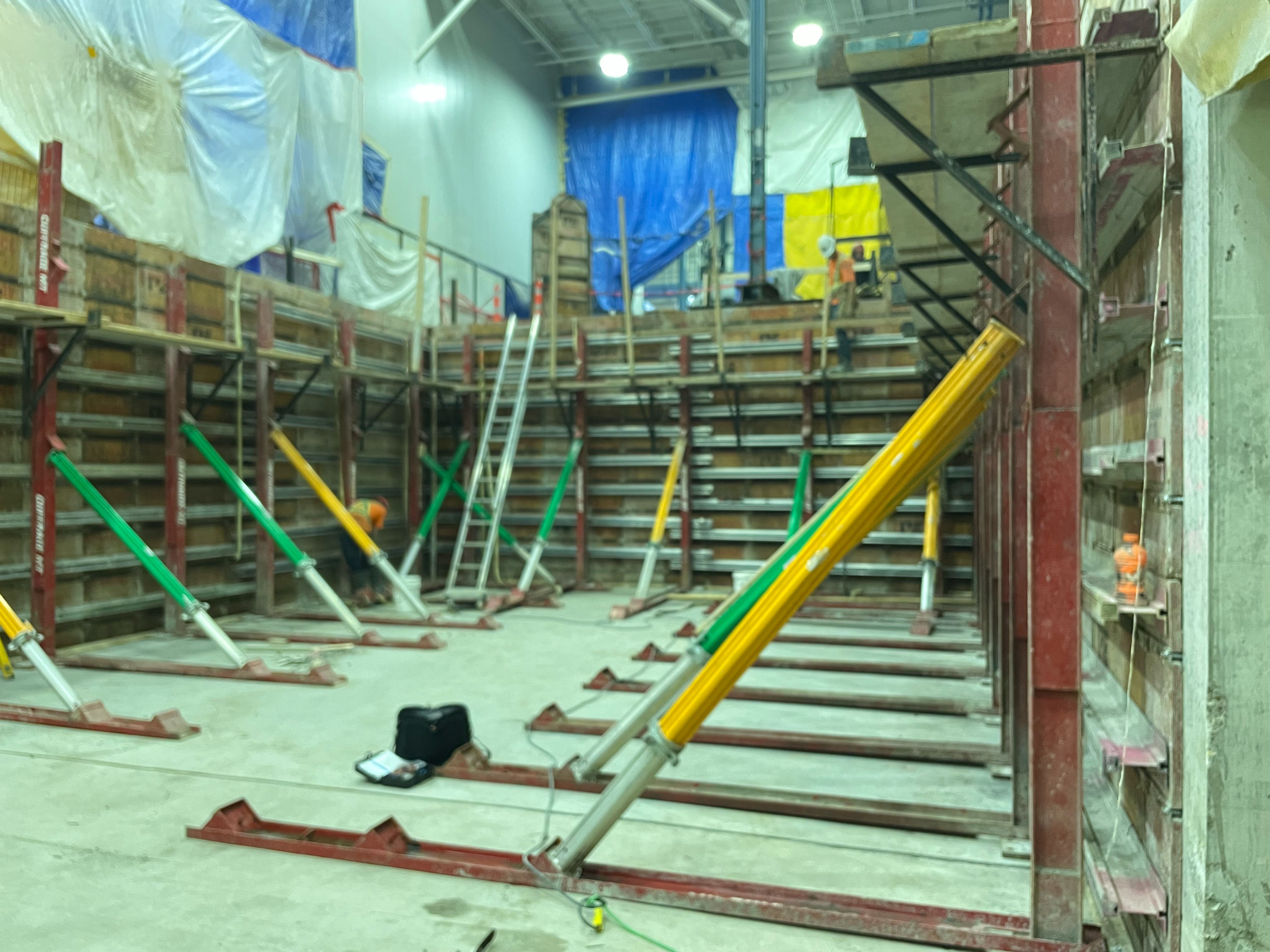 To meet these requirements, Xypex Admix C-500 was incorporated into approximately 35 m³ of concrete supplied through five ready-mix deliveries coordinated by Béton Provincial and Groupe Béton Corbeil. The crystalline admixture reacts with moisture and unhydrated cement particles to form insoluble crystals that seal micro-cracks and block water pathways.