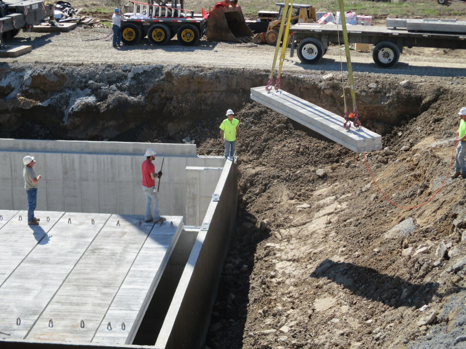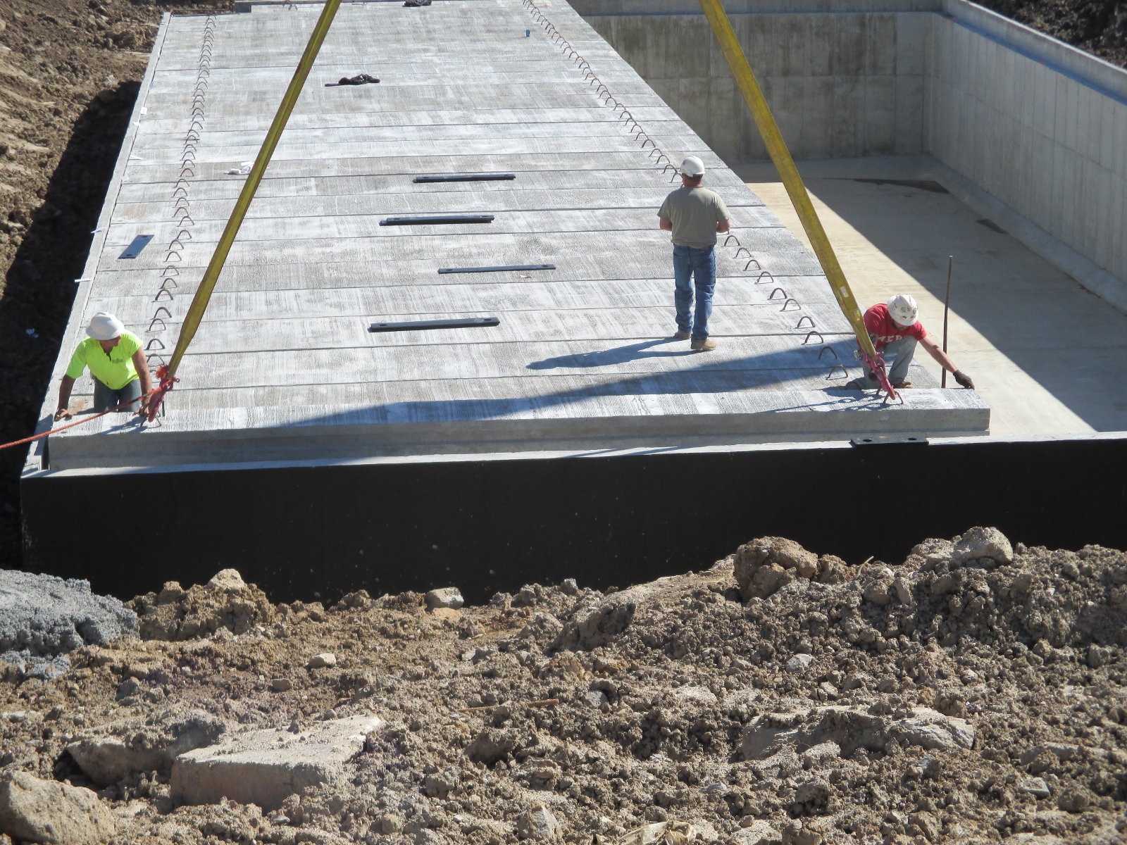 Specifically, the concrete crews added Xypex Admix C-500 at the concrete plant to about 480 yards of Type III cement based concrete at a dosage rate of 20 lb of Admix per cubic yard for the poured in-place walls, the base of the lift station wet well and the excess flow storage structure. St. Louis Prestress, a provider of precast and prestressed concrete materials, also used Admix C-500 for the precast rectangular planks that cross the top of the wet well, as specified by Cochran. The planks are 12-in. thick x 48-in. wide x 25-ft long.