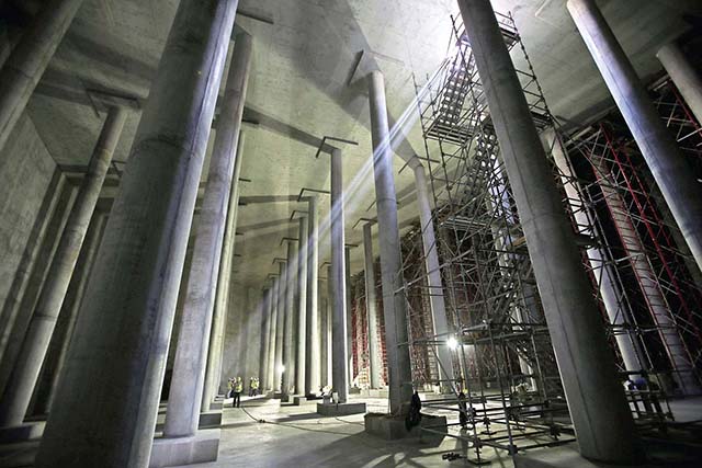 Eighty-eight concrete columns rise 80 feet from the floor here, in this cavernous reservoir minutes south of San Francisco on...