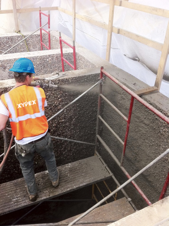 Xypex was applied to foundation walls on this project. The original specifications called for an elastomeric membrane, but this was...