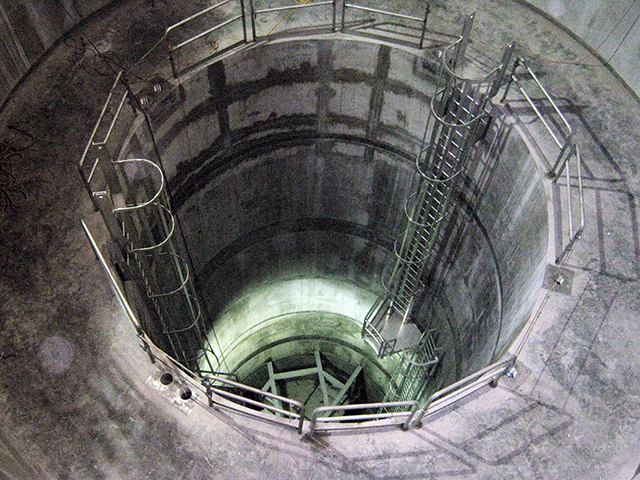 This nuclear training facility includes a round shaft/well that is used as a mock training reactor, and a square well...